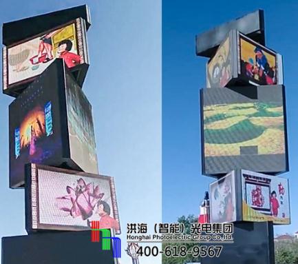 例如,近期洪海在給天津河西區(qū)一個客戶安裝的LED數(shù)字旋轉(zhuǎn)魔方柱。
