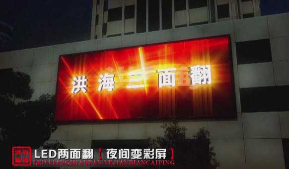 led兩面翻顯示屏將三面翻和電子顯示屏有機地巧妙結合,使其造價遠遠低于普通的電子顯示屏。投入低,用途廣,可以演繹無限的精彩內容,可以容納大量的廣告客戶,最大限度地提高廣告投資商的投資回報率。使用壽命長,可移動性。那么就由洪海光電工程師為大家介紹下led兩面翻顯示屏優勢。